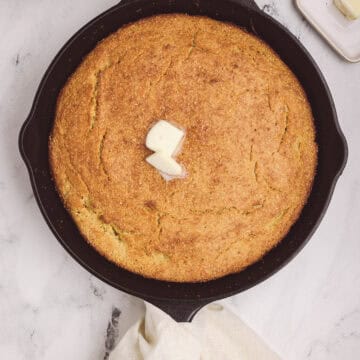This classic cast iron cornbread is rich, buttery, and baked to golden perfection with crisp edges and a soft, tender center. Made without oil and finished with milk and sour cream, it’s an easy, old-fashioned recipe that comes together quickly using simple pantry staples. Perfect for serving alongside chili, beans, barbecue, or enjoyed warm with butter and honey, this skillet cornbread is timeless comfort food at its best.